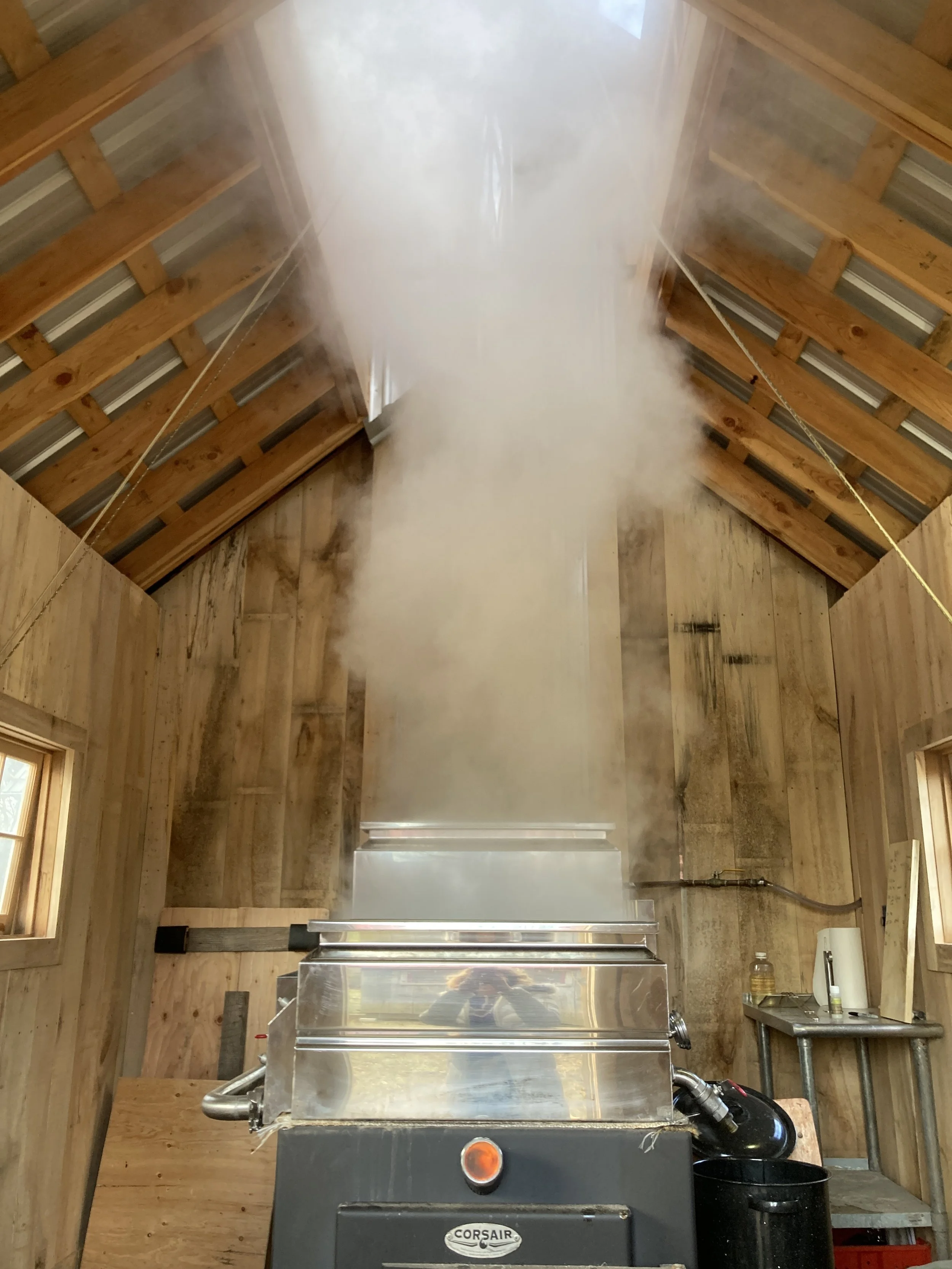 Sugaring goes well into the night, as it takes over 40 gallons of sap to make one gallon of syrup.
